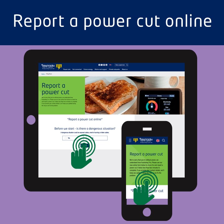 So, next time you’re in a power cut, report it online by using our Report a power cut online form. |